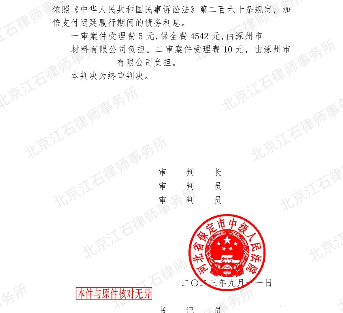 工伤保险待遇纠纷-江石律师代理吴某与涿州市某包装材料公司工伤保险待遇纠纷二审获赔31万